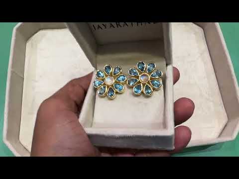 Blossom | Rainbow Moonstone And Swiss Blue Topaz | Studs